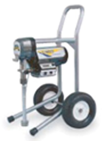 1. 3 horsepower, 0. 70 gpm Airless Piston Paint Sprayer mounted on a high boy cart. 3000 max psi, .023 inch maximum spray tip, 300 foot maximum hose or 300 foot maximum extension cord and equipped with 50 foot hose and professional spray gun with 517 spray tip.